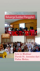 Dalam rangka mewujudkan program TPP KAM tahun 2022 “Keluarga sebagai sumber panggilan”, Paroki Santo Antonius Padua Hayam Wuruk Medan mengadakan kegiatan Live in Misdinar. Kegiatan ini bertujuan agar para misdinar semakin mengenal panggilan hidup dan spiritualitas Imam dan biarawan/wati khususnya yang berkarya di wilayah Paroki Santo Antonius Padua Hayam Wuruk Medan. Ada lima komunitas biarawan/wati yang menjadi tempat live in misdinar yakni: Pastoran Hayam Wuruk, KSSY Hayam Wuruk, KSSY Karya Kasih, OSF Setia Budi dan FCJM Sei Padang.